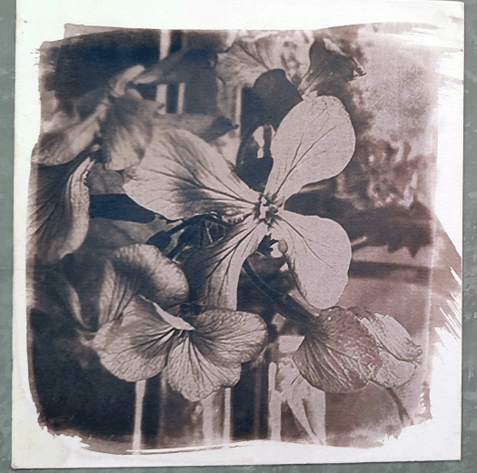 Christina ran a workshop introducing Plant-based Cyanotype Toning to students from the Green Spaces Society. This focussed on Botanical Toning of Cyanotypes using rosemary, mint, and lemon balm which are all growing in the Stow garden. Christina also prepared some green tea and coffee toners just to expand the range of tones the students could work with.