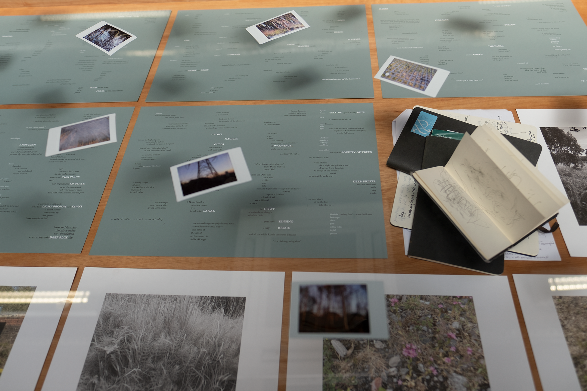 These text works, digital prints, polaroids and research journals result from a collaborative process – involving practice-based and archival research, deep mapping and site writing – over a period of 3-4 years at Hamiltonhill Claypits. Our collaboration has formed a case study for the International Network for Contemporary Archaeology in Scotland, asking: What can our collaborative, cultural understandings of the changes (disruptions, ruptures and reclamations) witnessed at Hamiltonhill teach us about how we conceive and position landscape?